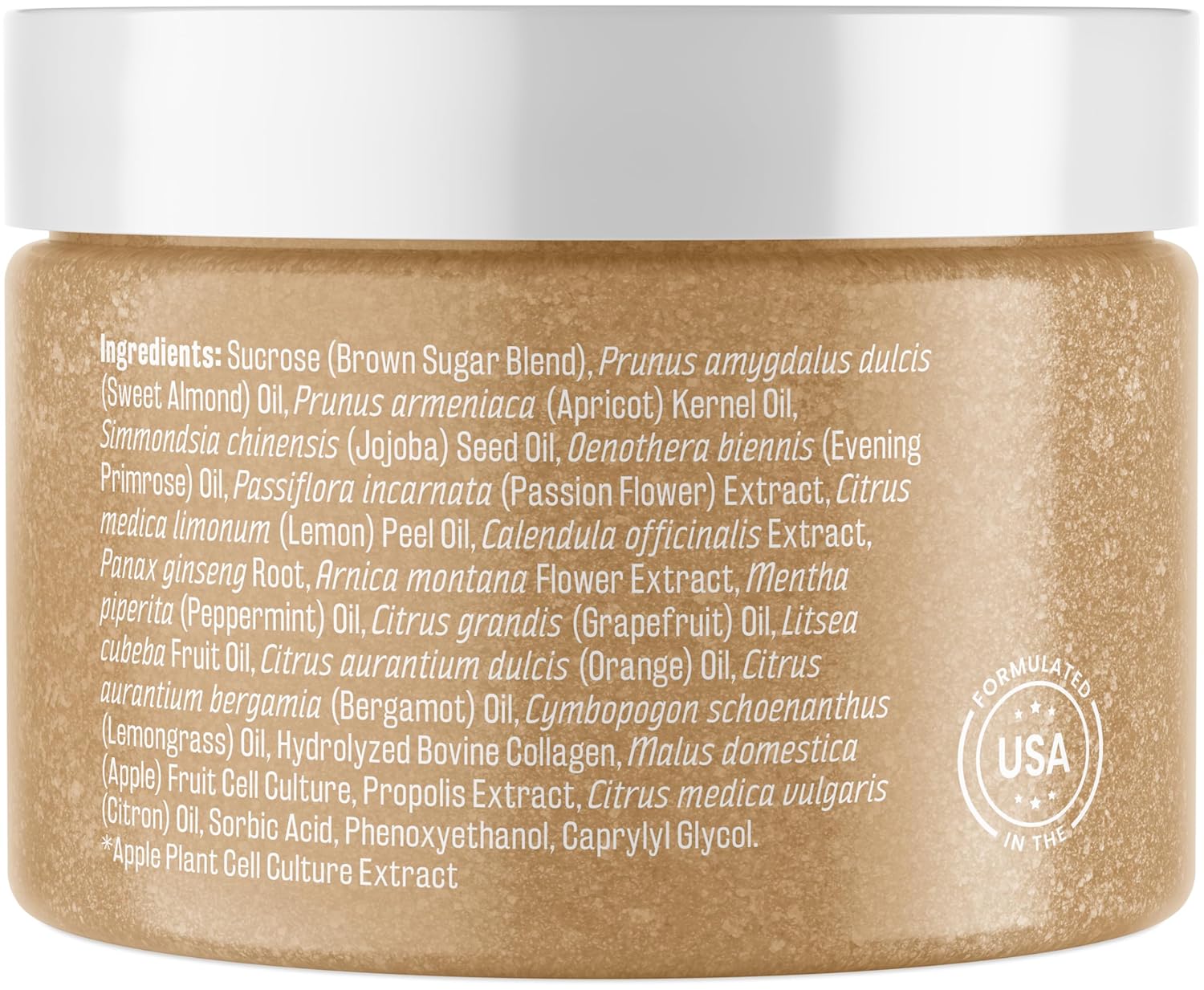 - Infused with Collagen and Stem Cell: Our sugar scrub exfoliator will refine your beauty regimen providing a boost in collagen production and increasing skin cell longevity. A powerful combination that delivers unmatched anti-aging skin-care results!*