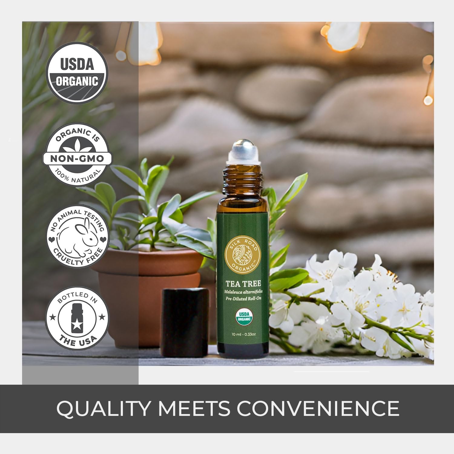 Silk Road Organic Tea Tree Essential Oil Roll On, 100% Pure USDA Certified – Healthy Skin, Toenails, Feet, Body Odor - 10 ml Roller - Always Pure, Always Organic