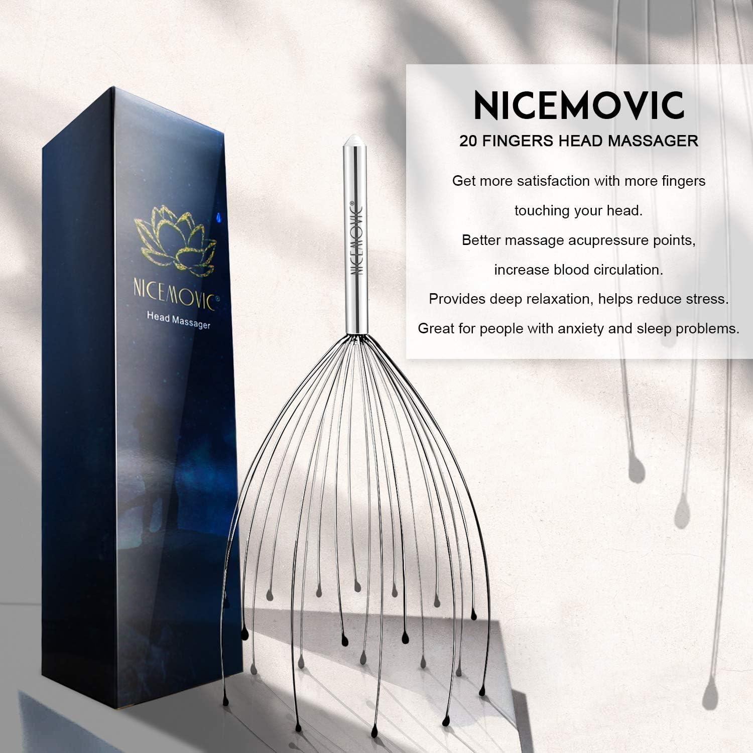 NICEMOVIC 2 Pack Head Scalp Massager, Stocking Stuffers Stress Relief Gifts for Women Men, 20 Fingers Scalp Head Scratcher for Hair Stimulation Body Relaxing (Silver & Silver)