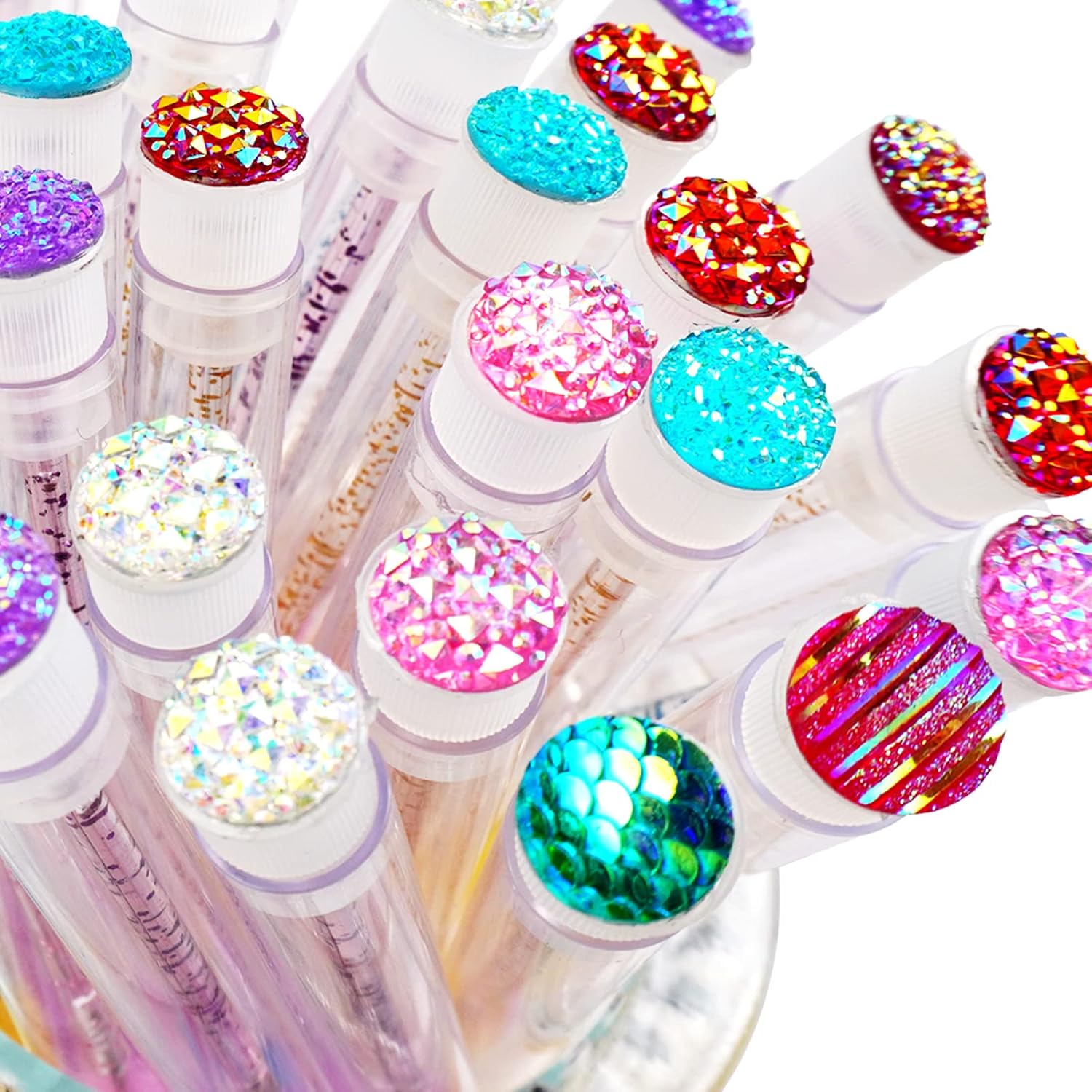 - 20 MEANS 20: Package of 20 pieces mixed color disposable mascara wands and 20 pieces reusable diamond decorative empty tubes. Make your eyelash spoolie exquisite;
