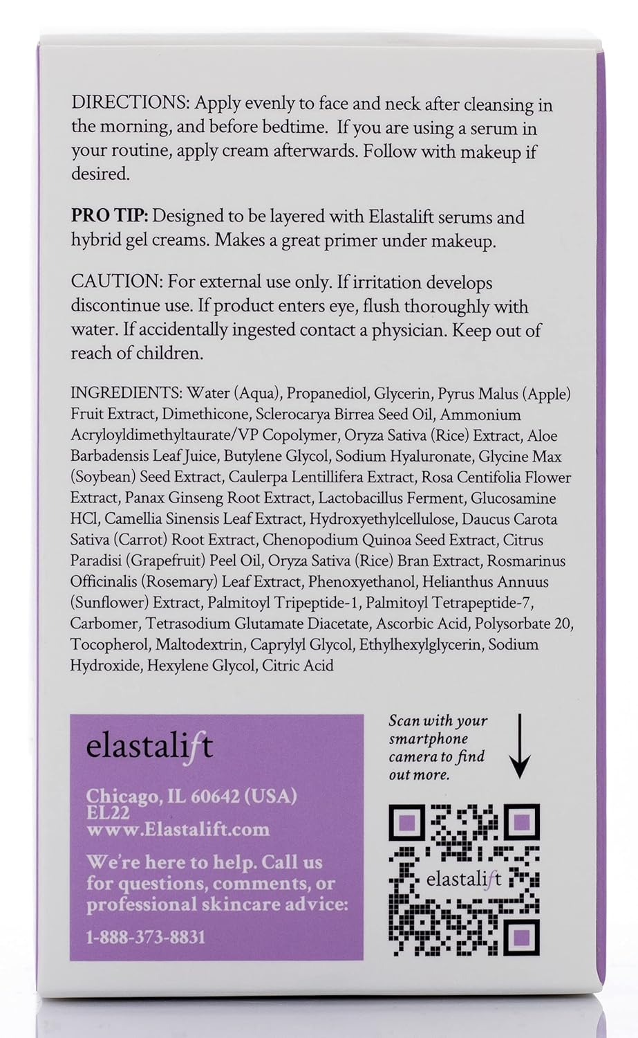 - LOCK IN MOISTURE – Regular use of a Collagen Face Moisturizer Cream in your daily skin care routine can help to improve skin texture + skin tone, help plump sagging skin, and help prevent signs of premature aging. This Elastalift Fragrance Free Concentrated Collagen Face Lotion contains a blend of moisturizing ingredients like Hyaluronic Acid, Marula Oil, Peptides, Aloe Vera, & more, which work together to hydrate + soothe your skin to make your skin look smoother, firmer, and more taut.