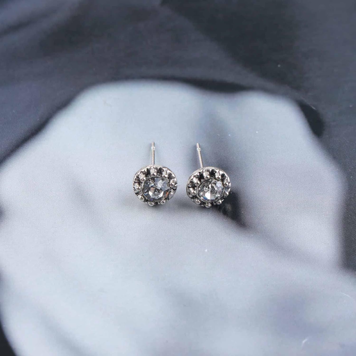 - Small circle crystal earrings in silver,last long time without tarnish.
