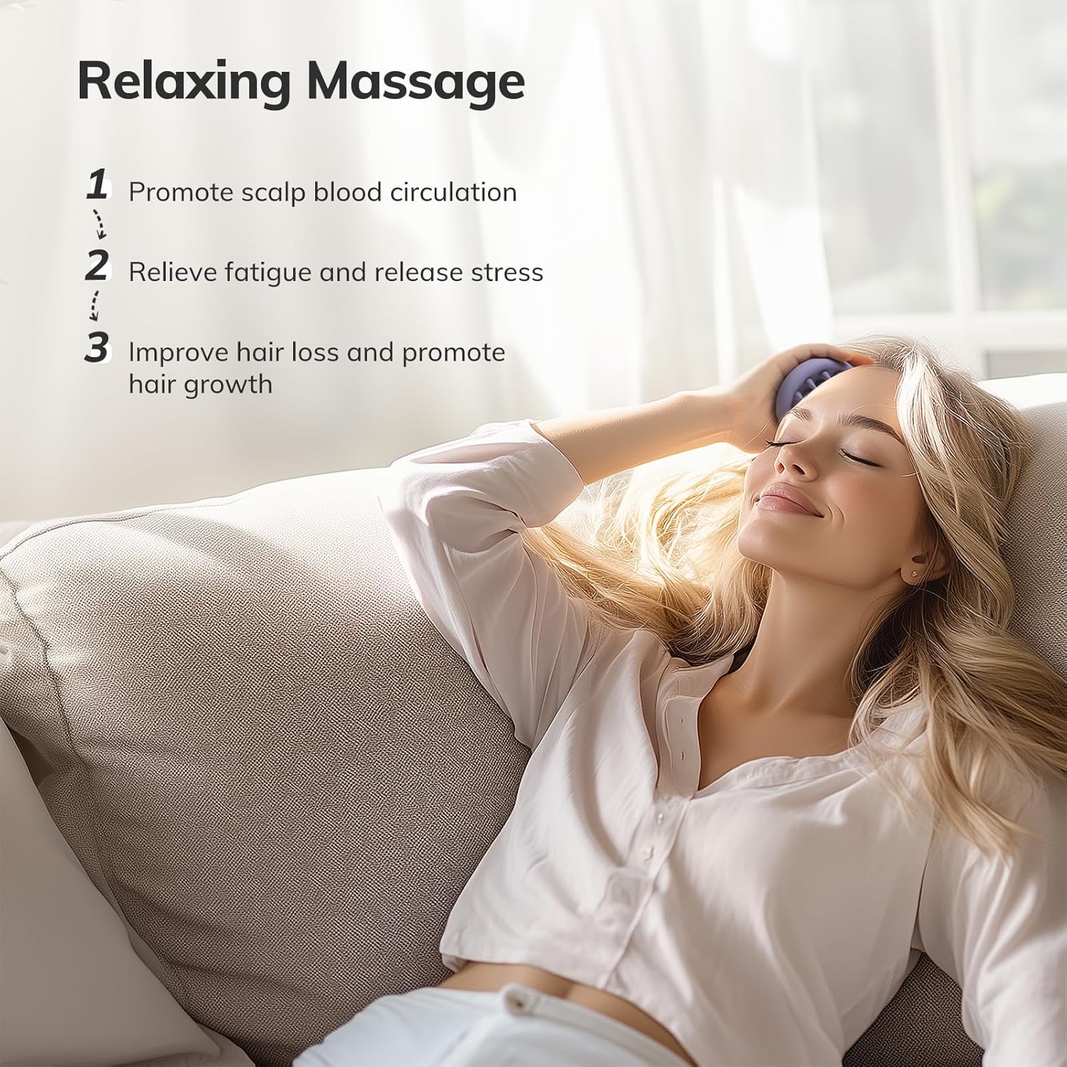 Sndyi Silicone Scalp Massager Shampoo Brush, Hair Scrubber with Soft Silicone Bristles, Scalp Scrubber/Exfoliator for Dandruff Removal, Wet Dry Scalp Brush for Hair Growth & Scalp Care, Gray Purple