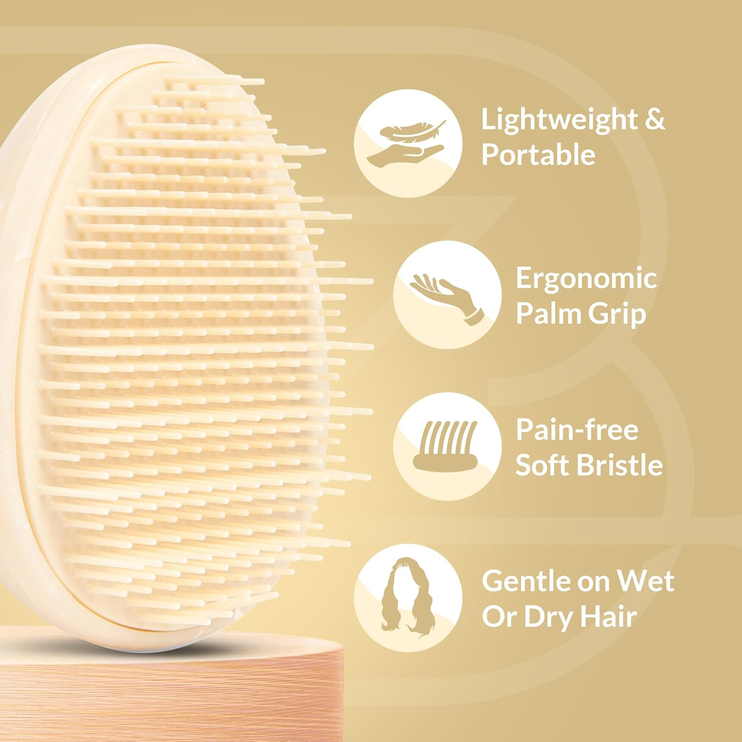 - Mini Detangler Brush: Our mini brush is designed to detangle hair effortlessly, reducing breakage and split ends. Our detangling brush features firm, non 'ball-tip', three-tiered bristles. The bristles are long enough to stimulate scalp circulation, fostering healthy hair growth. Its ergonomic shape ensures a secure grip during use.