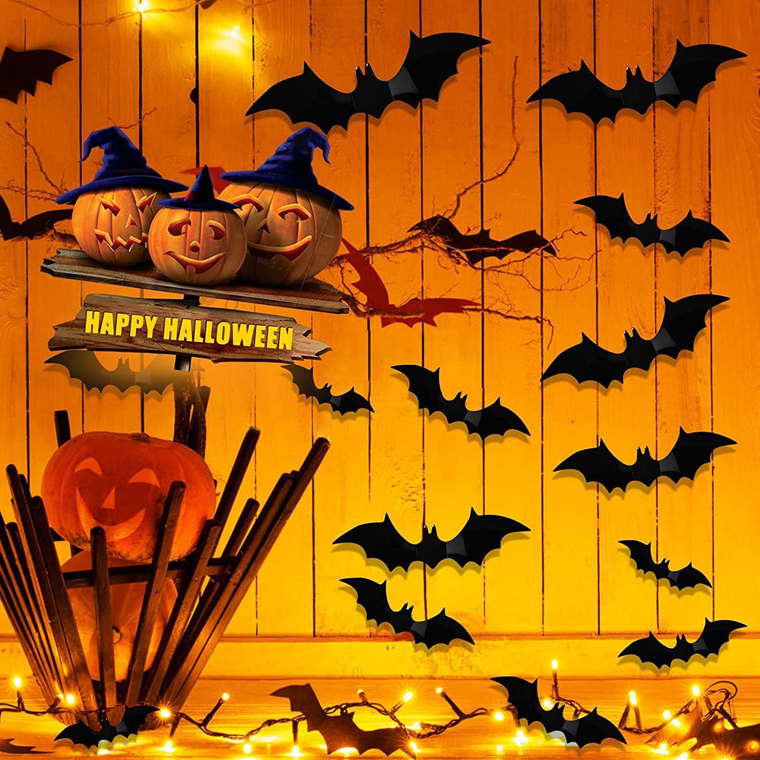 Halloween 3D Bats Decorations Halloween Bats Decoration Sticker Waterproof Scary Bats Wall Decor for Halloween Home Decor Wall and Party Decoration 60Pcs