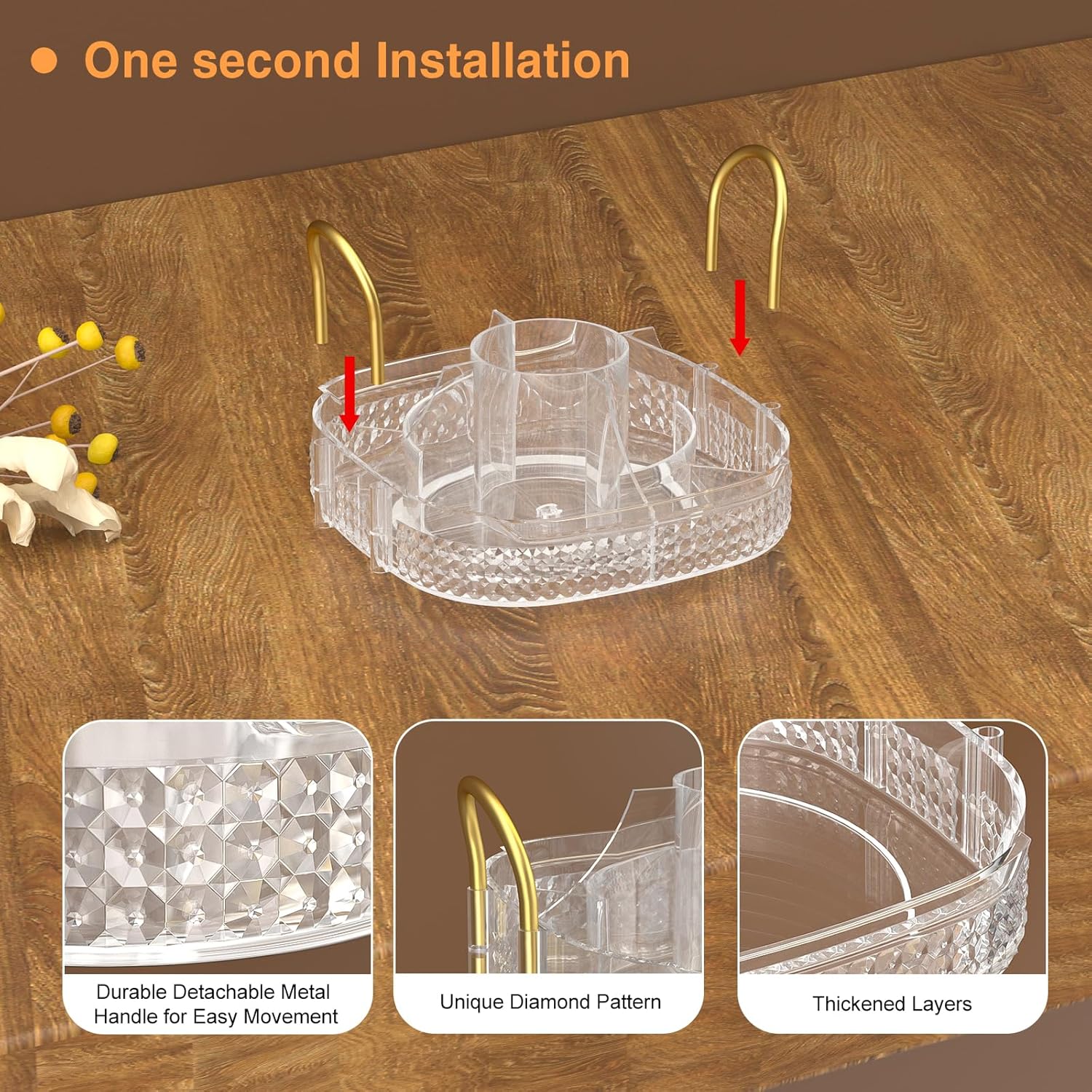 - 360 Degree Rotation& Easy to Install:➤Reinforced steady base rotates smoothly and silently, the rotating makeup organizer is easy access to all of your make-up in seconds.Less installation step are required other than inserting metal rack and handle,do not worry about repeated disassembly to shorten the lifetime of the makeup organizer.