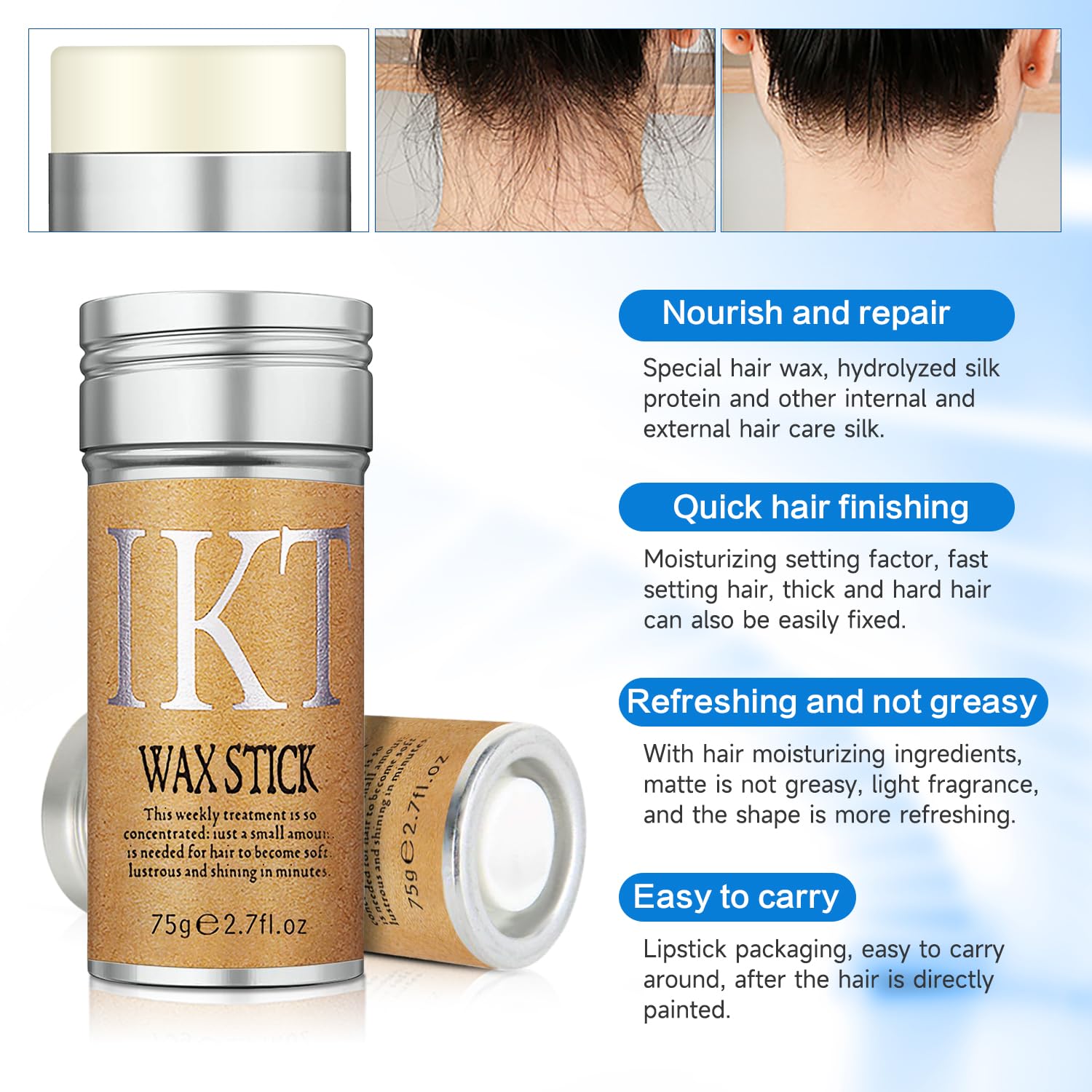 - 【Long-Lasting Styling Effect】 Hair wax stick is specially designed for hair fixation, edge control and styling, and the styling lasts for a long time. It is non-sticky, non-greasy, non-flaking and non-residue, and the styling effect will definitely satisfy you