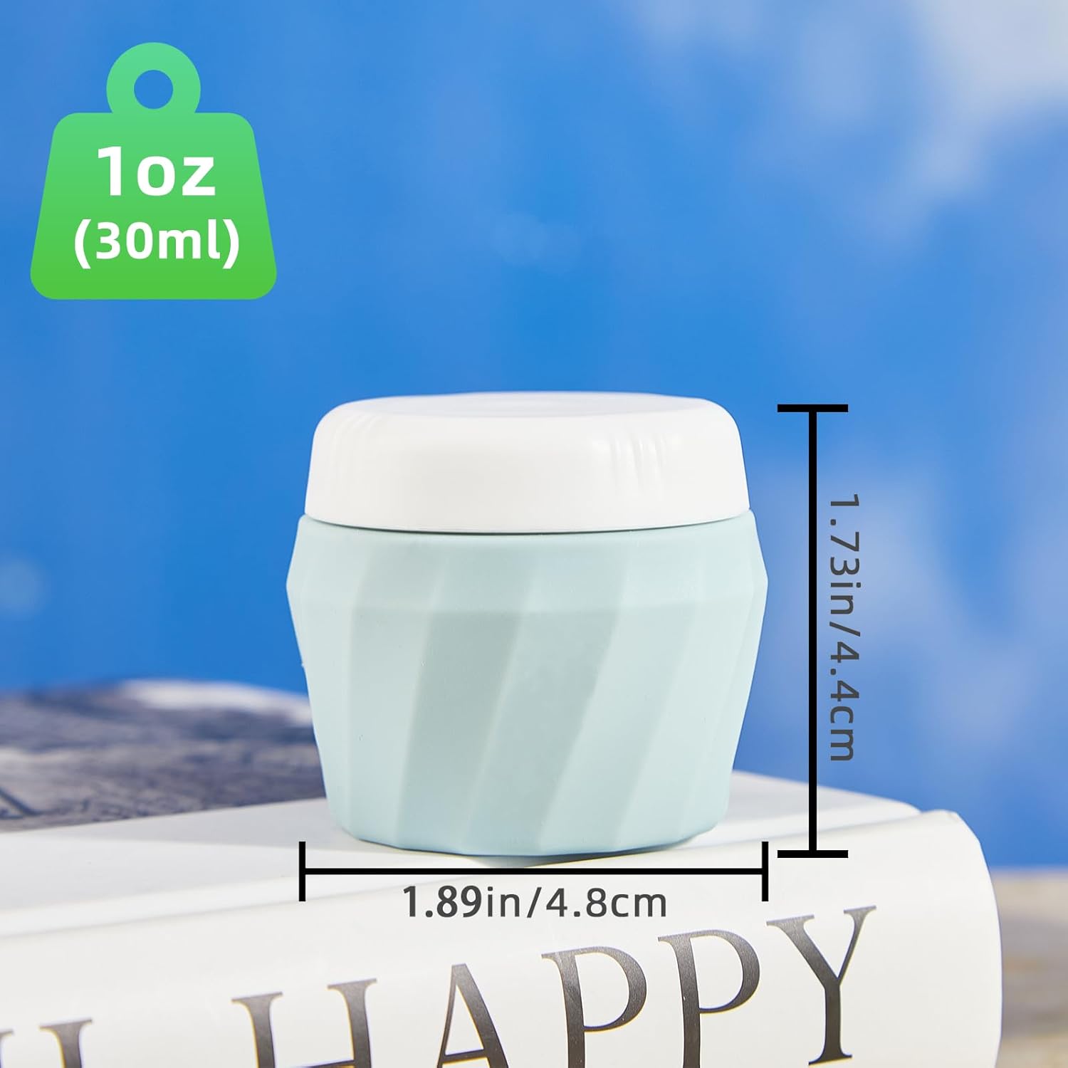 - 【MULTI-PURPOSE USE】Travel Containers for Toiletries have multiple uses. Travel silicone cream jars with lids can store creams, lotions, make-up, scrubs, ointments, accessories, beads, small jewelry and more. Works great for gel-type items