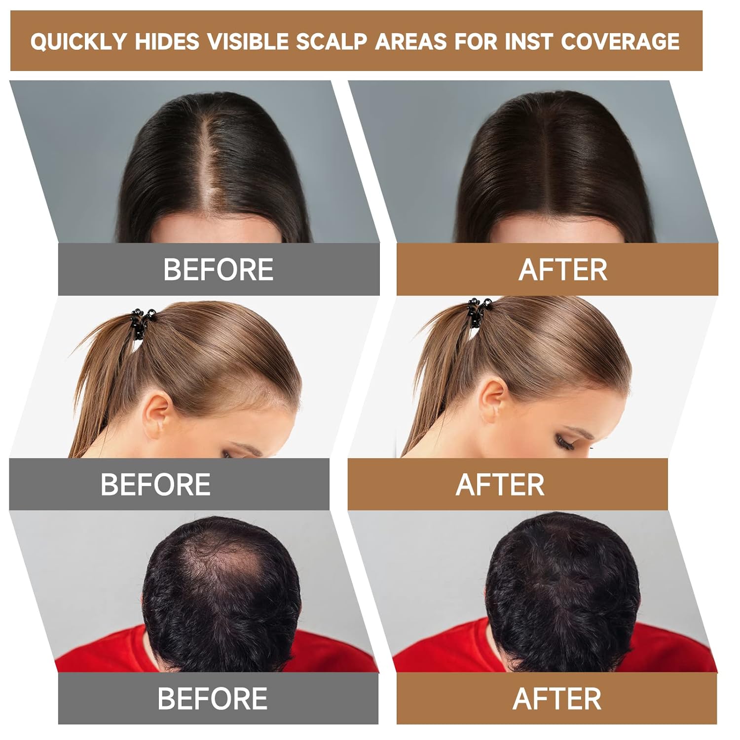 - Enhance Styling - Made from safe, all-natural ingredients, this soft hair shadow powder won’t clog your pores or damage your hair. It stays on for 14+ hours, providing long-lasting coverage that’s sweatproof, windproof, and easy to clean with regular shampoo. Experiment with different shades and styles, available in 12 kinds of different brown, gray, blonde.