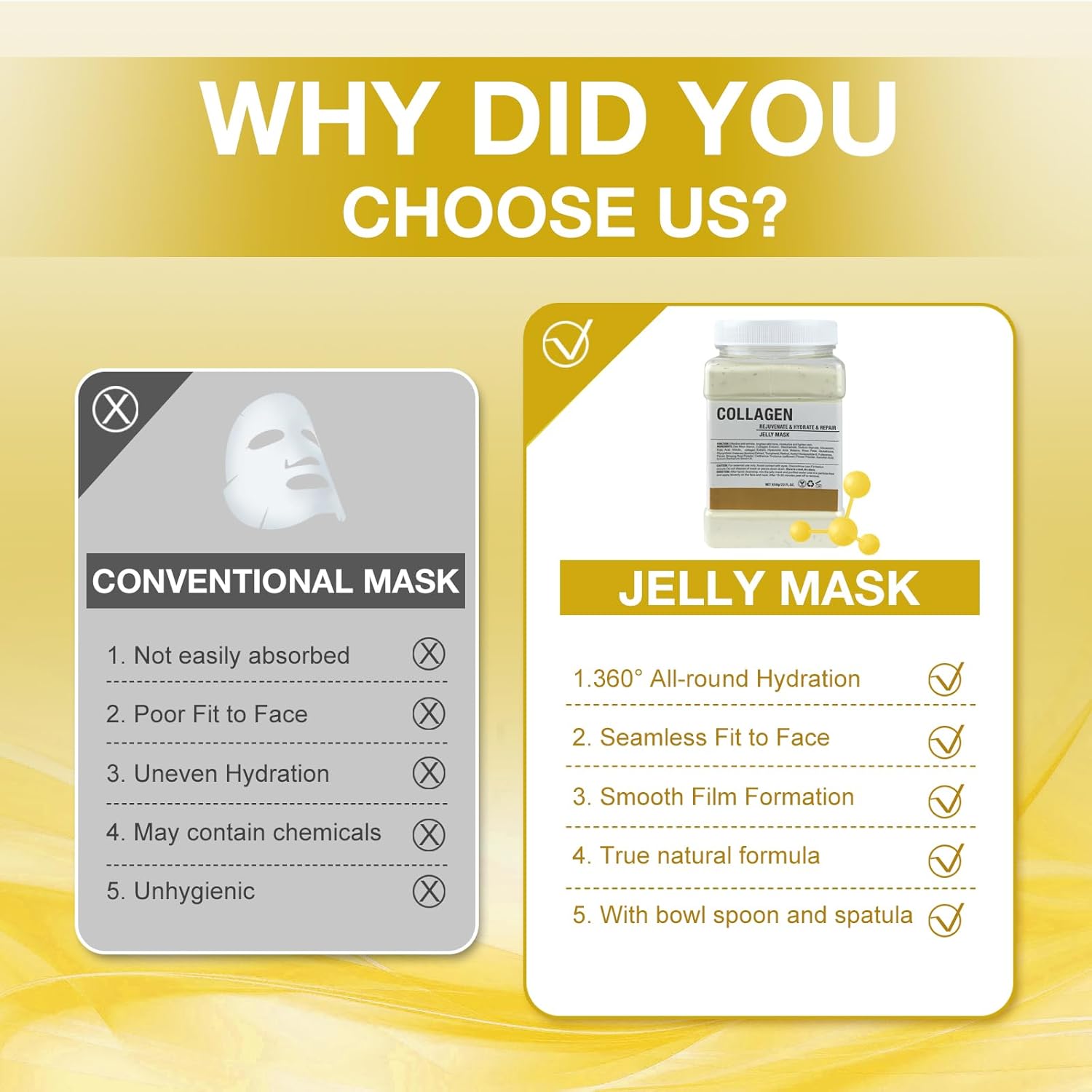 Jelly Mask for Facials Professional, Hydrating & Moisturizing Peel-Off Natural Gel Face Mask SkinCare, Professional Spa Use Jelly Face Masks, Deep Hydration & Glow 23 Fl Oz (Collagen)