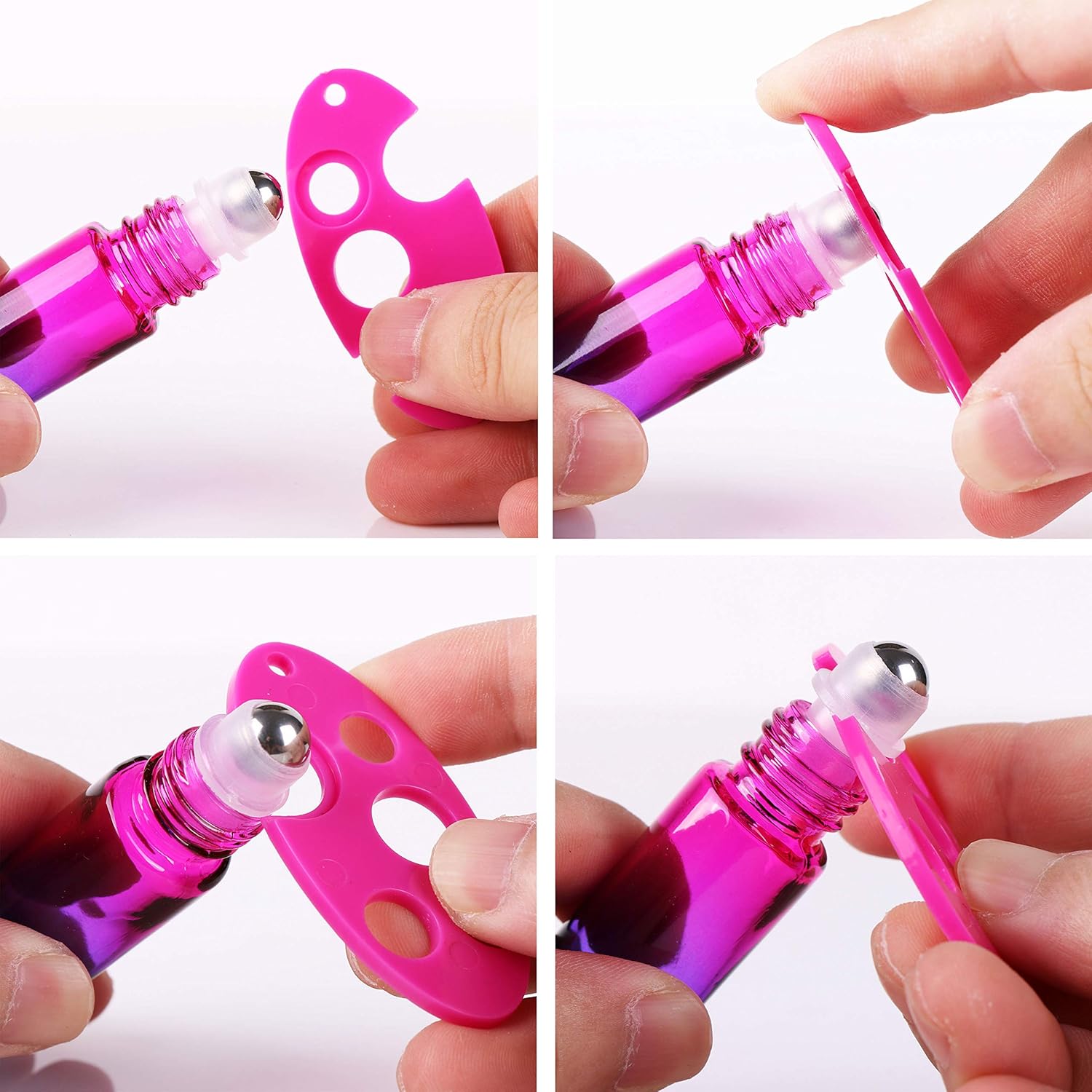 - Package includes: 4 gradient color glass bottles(4 diferent colors) +4 roller balls +6 labels +2 droppers +2 funnel +1 opener