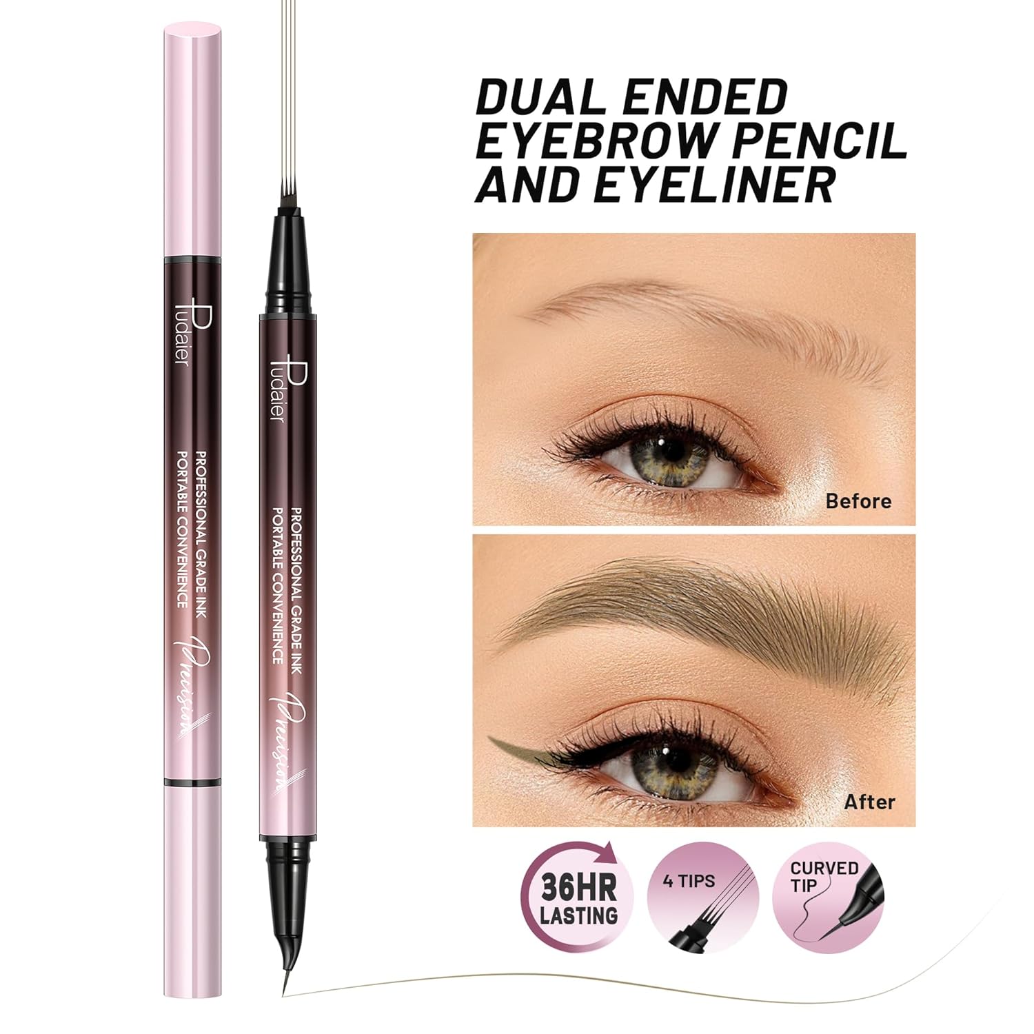 - Dual-ended Eyebrow Pen: With a unique 4-fork tips, this pen effortlessly fills in sparse areas, while the micro-fine brush with curved tip lets you outline with precision. Achieve natural-looking eyebrows with ease;