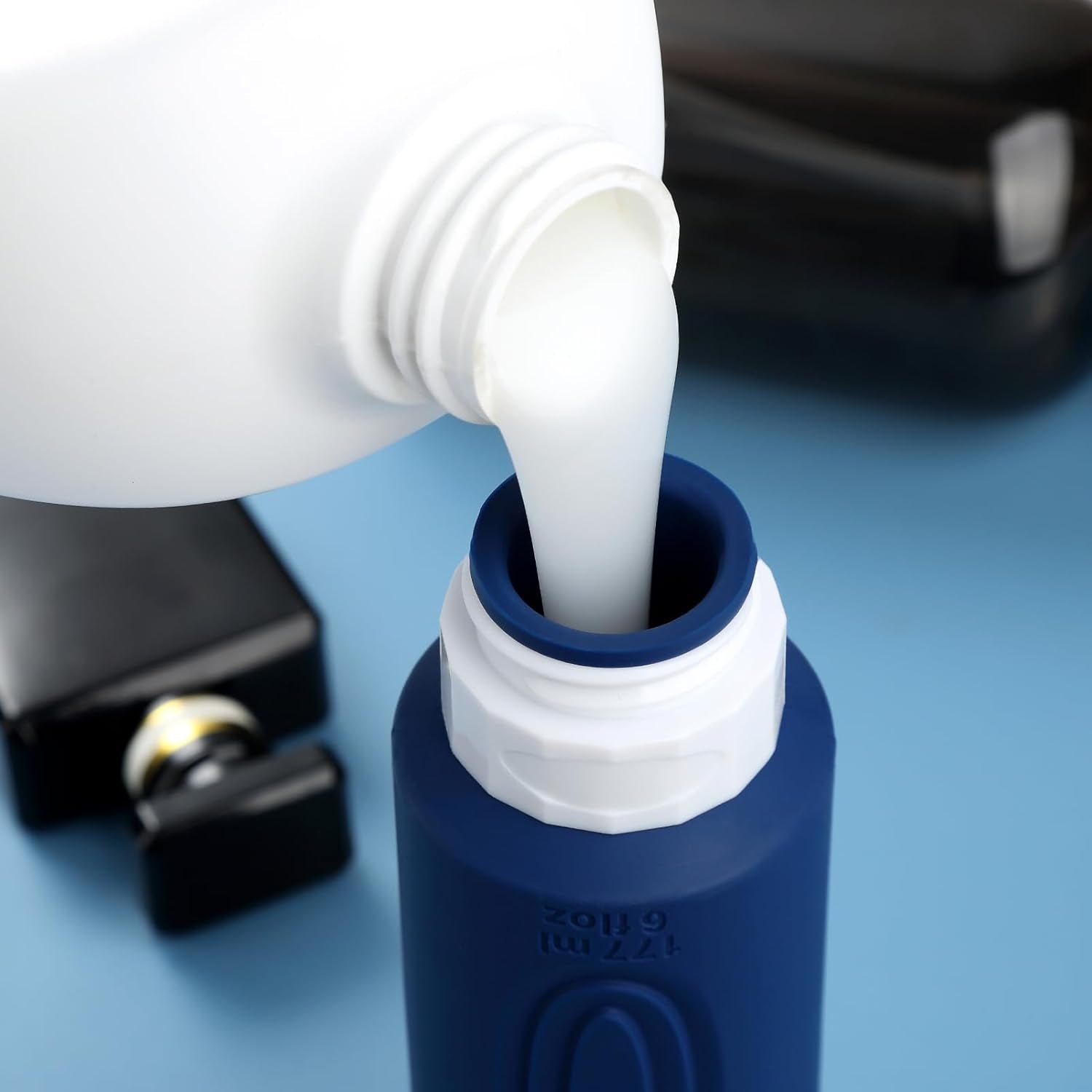 - Oversize 6oz travel bottle: Featuring a PVC toiletry bag, these travel-sized silicone bottles are perfect for storing and dispensing your favorite shampoos, lotions, and other liquids. Designed for convenience and durability, this travel set is a must-have for all your adventures.