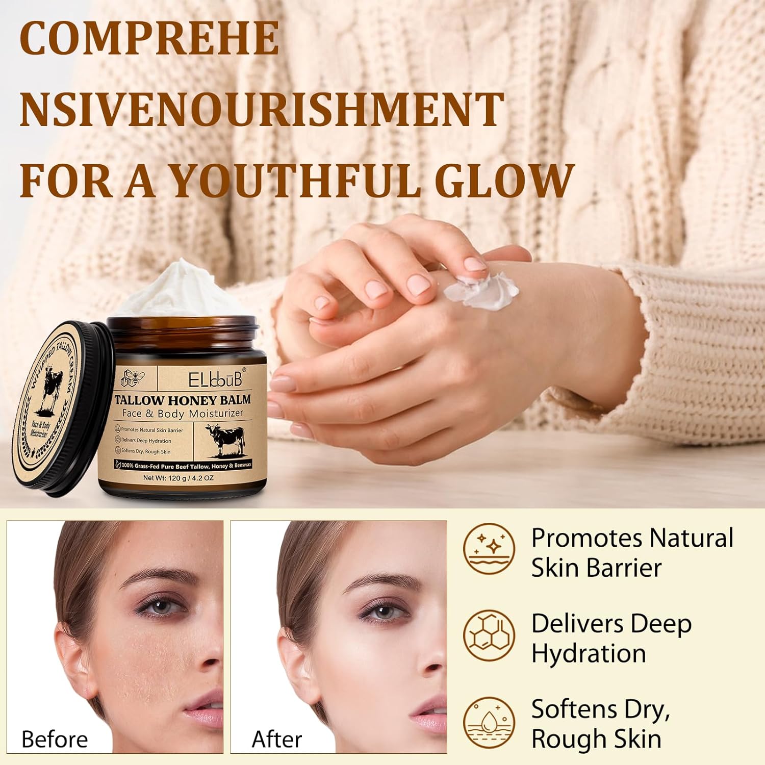 - Premium Natural Ingredients: Made with organic, grass-fed beef tallow, raw wild honey, and beeswax, providing superior skin nourishment.