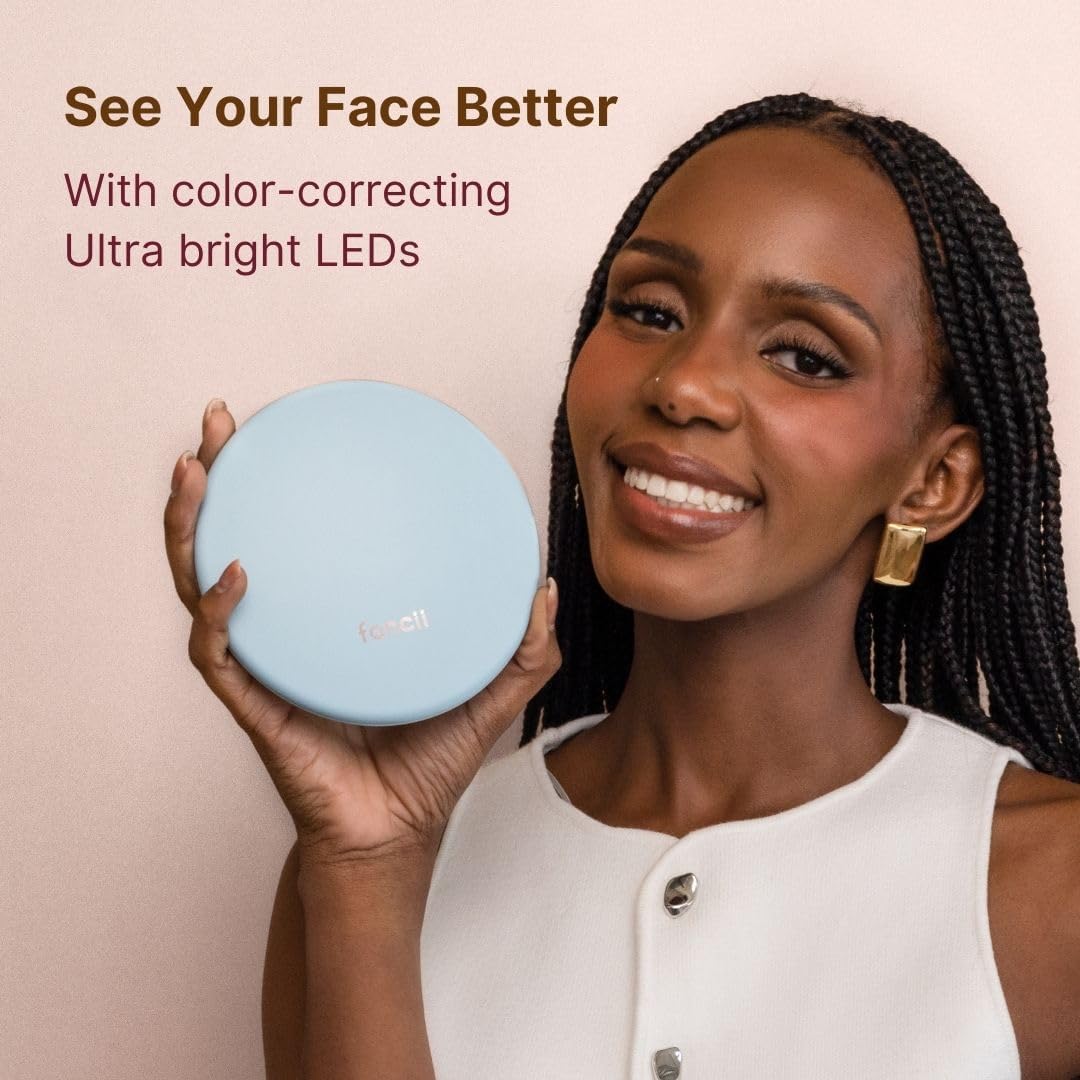 Fancii Taylor Rechargeable Compact Makeup Mirror with LED Lights, 10x /1x Magnifying, 3 Light Settings, Large 5” Wide | Travel Mirror for Purses (Soft Sky)