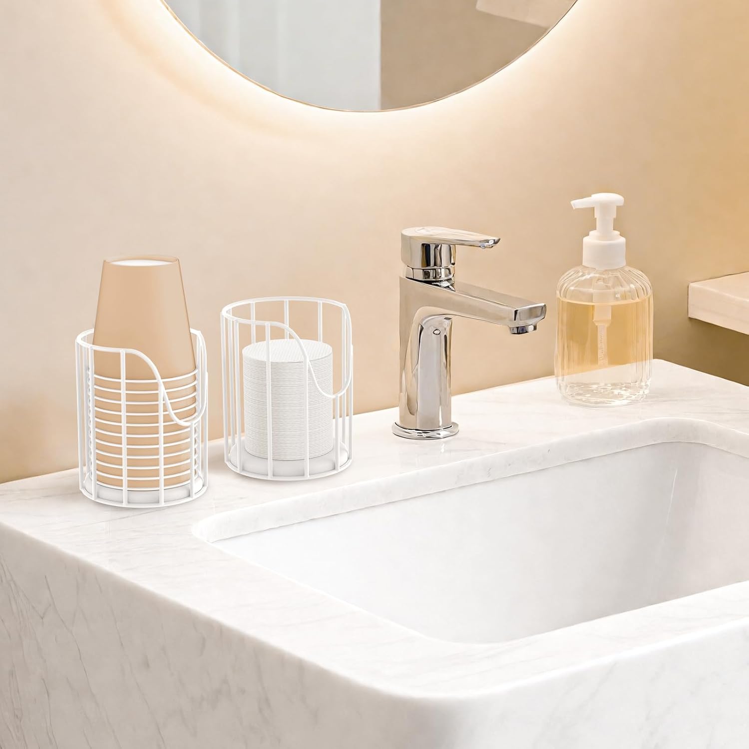 Luxspire Bathroom Cup Dispenser, 3-5oz Dixie Cup Dispenser, Metal Dixie Cup Holder, Disposable Paper Cup Holder for Bathroom, Cotton Pad Holder, Guest Bathroom Essentials, White, 2 Pack