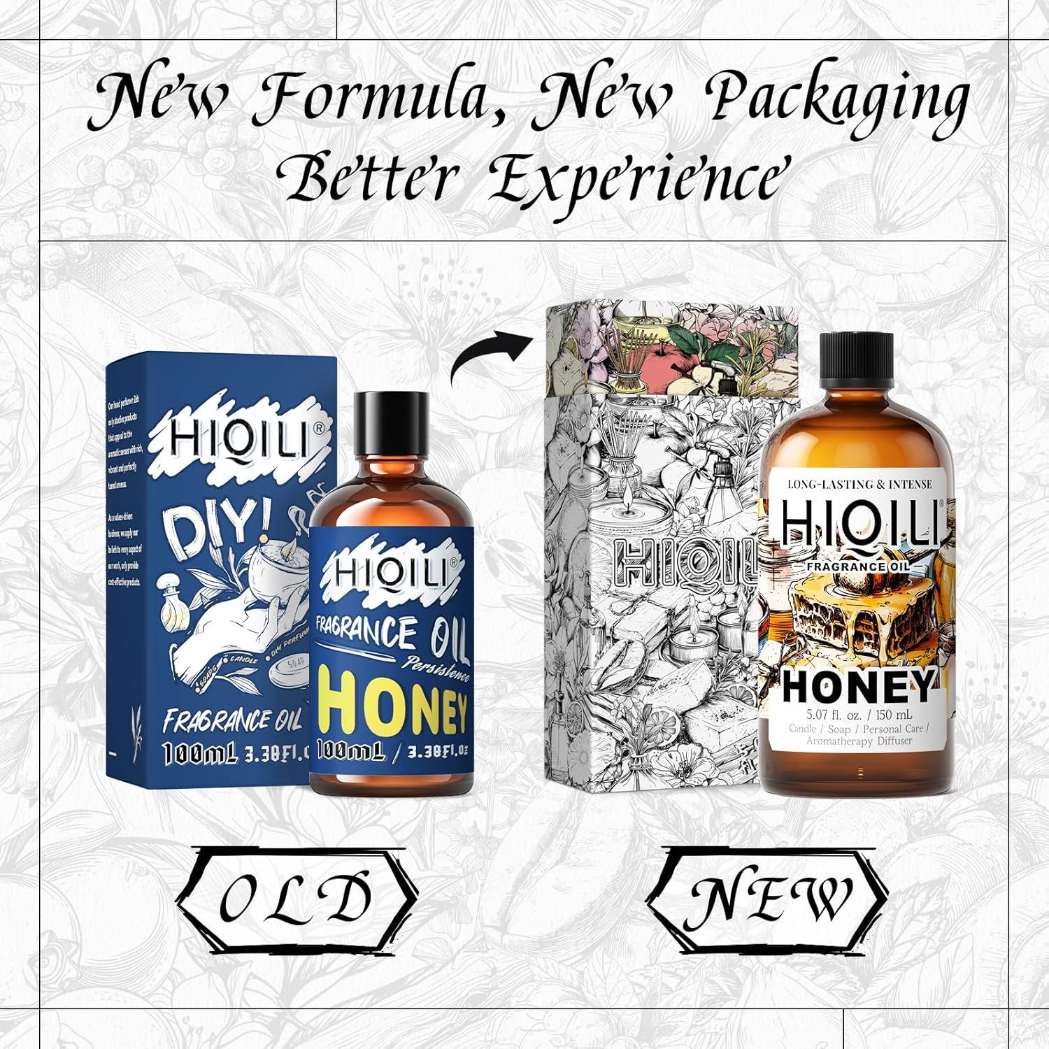 HIQILI Honey Fragrance Oil for Making Candle, Soap, Perfume, Warm Scents for Essential Oil Diffusers, Great for Home, Laundry - 5.07 Fl Oz