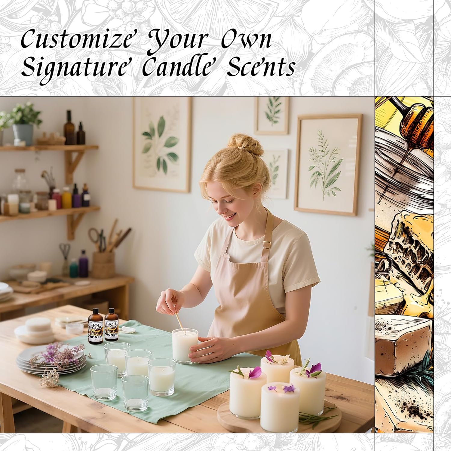 - Golden Honey Scent: Sweet, velvety honey aroma reminiscent of freshly gathered nectar. The rich fragrance offers a comforting and indulgent olfactory experience